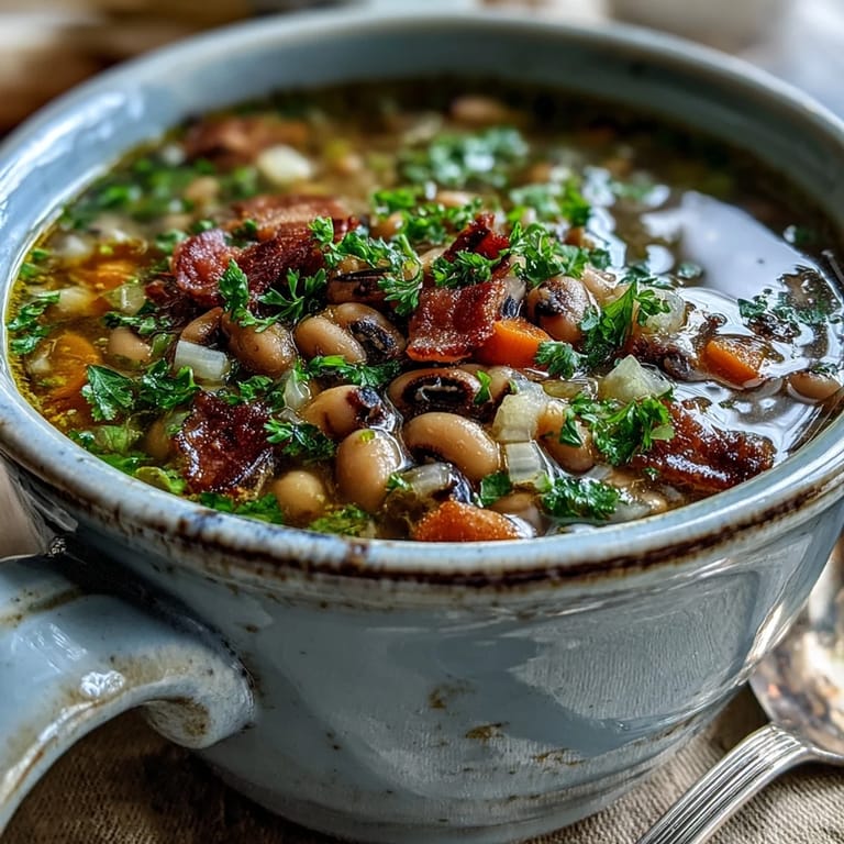 Pin it There's something about the way bacon fat catches the light when you're building a soup that tells you everything's going to turn out right. My grandmother used to say that black-eyed peas were lucky, and I believed her, especially when the house filled with that smoky, savory smell while they simmered. One winter afternoon, a friend stopped by unexpectedly just as I was ladling this into bowls, and she stayed for three helpings, talking about how it tasted like comfort and home. That's when I understood this wasn't just soup—it was the kind of dish that makes people want to linger at the table.
