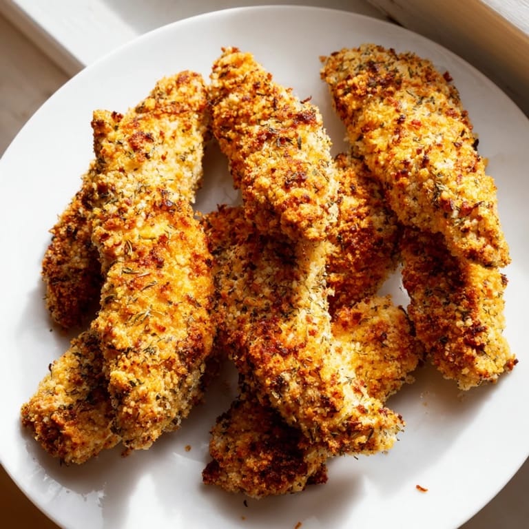 Pin it My kitchen counter was a mess of breadcrumbs and egg drips when I realized I'd been coating chicken strips for twenty minutes without even turning on the oven. That's what happens when you cook distracted by a podcast, but those panko-crusted tenders turned out so golden and shatteringly crisp that I stopped caring about the cleanup. The herbed crust crackled under my fork, and suddenly I understood why my neighbor kept raving about baking instead of frying. There's something deeply satisfying about pulling a tray of bronzed, crunchy chicken from the oven and knowing you didn't stand over a pot of bubbling oil. Now these strips show up on my table at least twice a month, usually with a crowd of hands reaching before I even set the plate down.