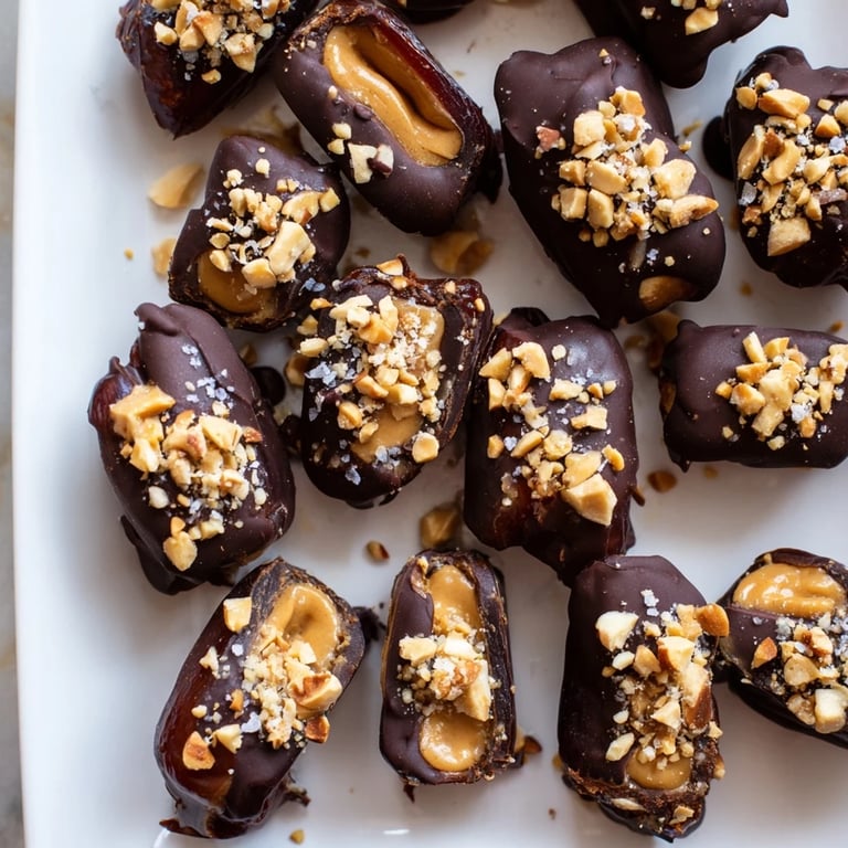 Pin it I discovered this treat by accident on a Tuesday afternoon when I was trying to use up a bag of dates before they went stale. My roommate had left a jar of peanut butter on the counter, and I found myself staring at a block of dark chocolate, wondering if I could make something that tasted like a Snickers bar but felt less guilty to eat. Turns out, you can, and it's so much easier than any candy I'd ever attempted. Now it's the thing I make when I want to impress people without turning on the oven.