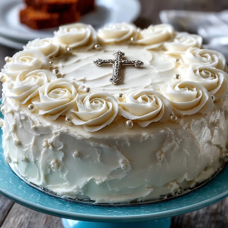 Pin it There's something about baking a First Communion cake that shifts the whole kitchen into a different mood. My cousin asked me to make hers three weeks before the big day, and I found myself standing in the baking aisle, suddenly aware that this wasn't just dessert—it was a marker, a memory. The vanilla sponge layers had to be perfect, the buttercream smooth as silk, and those fondant roses needed to look like they'd been crafted with intention. I'd made plenty of celebration cakes, but this one felt different, quieter somehow.