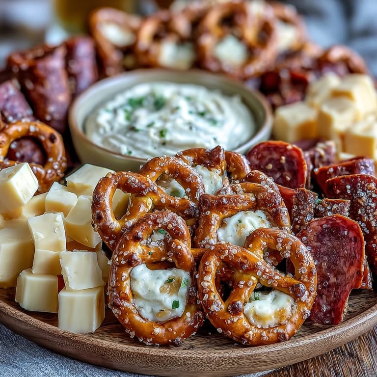 There's a rhythm to building a good snack board that I've learned through trial and mostly error. Start with what's sturdiest and most substantial—your pretzels and cheese—then use smaller, more delicate items to fill gaps and add visual interest. Think of it like landscaping: you want focal points, transitions, and surprises as someone's eye moves across the board. The key is leaving space; a crowded board looks chaotic, but a board with breathing room feels intentional and abundant at the same time.