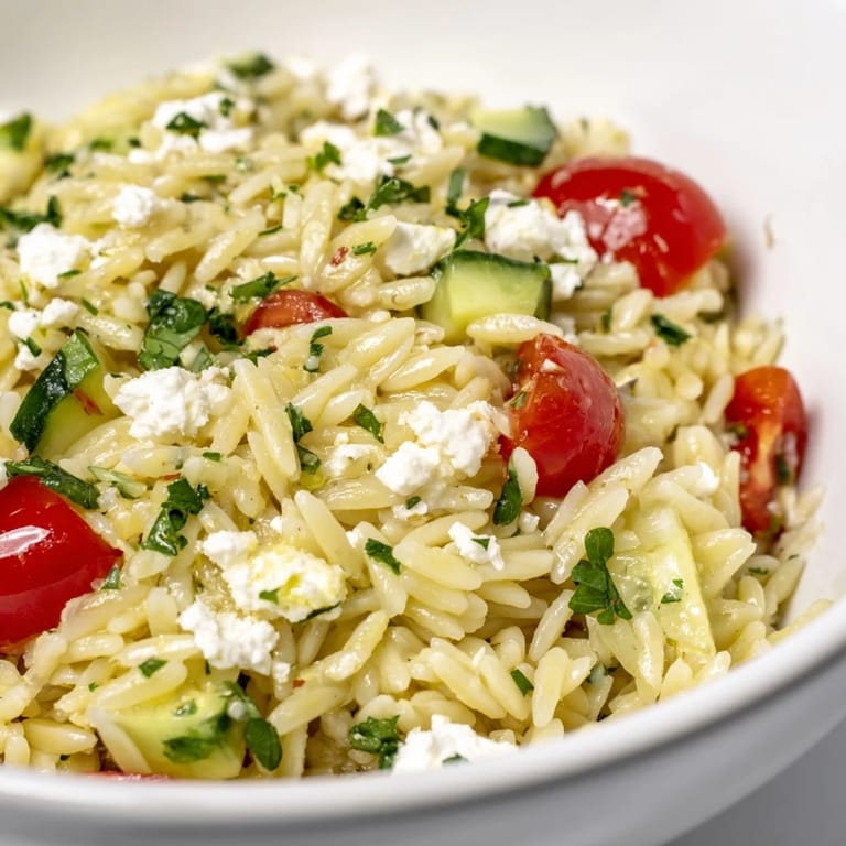 Pin it My kitchen counter was a mess of half-unpacked grocery bags when I threw this together on a sweltering July afternoon. I had no plan, just a craving for something cold and bright that didn't require turning on the oven. The orzo cooked while I chopped whatever looked crisp in the crisper drawer, and by the time I tossed it all with lemon and olive oil, I knew I'd stumbled onto something I'd make all summer long. It's the kind of salad that tastes like you tried harder than you did.