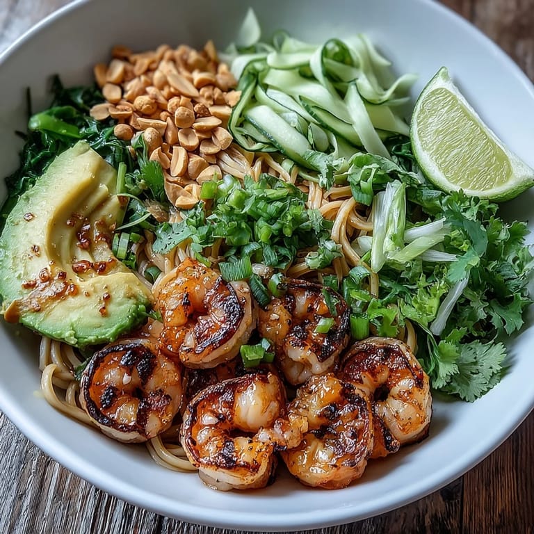Pin it My neighbor stopped by on a sweltering summer evening when I was experimenting with leftover shrimp and a half-empty jar of sesame oil, and what started as improvisation became the bowl I now make constantly. There's something about the way the smoke from the grill catches the sesame-dressed noodles, creating this unexpected harmony between char and delicate toasted flavors. She asked for the recipe before even finishing her first bite, and I realized I'd stumbled onto something that feels both restaurant-polished and completely approachable. The beauty of this bowl is how it comes together in under thirty minutes, yet tastes like you spent the afternoon in the kitchen. It's become my go-to when I want something that feels impressive but doesn't demand stress.
