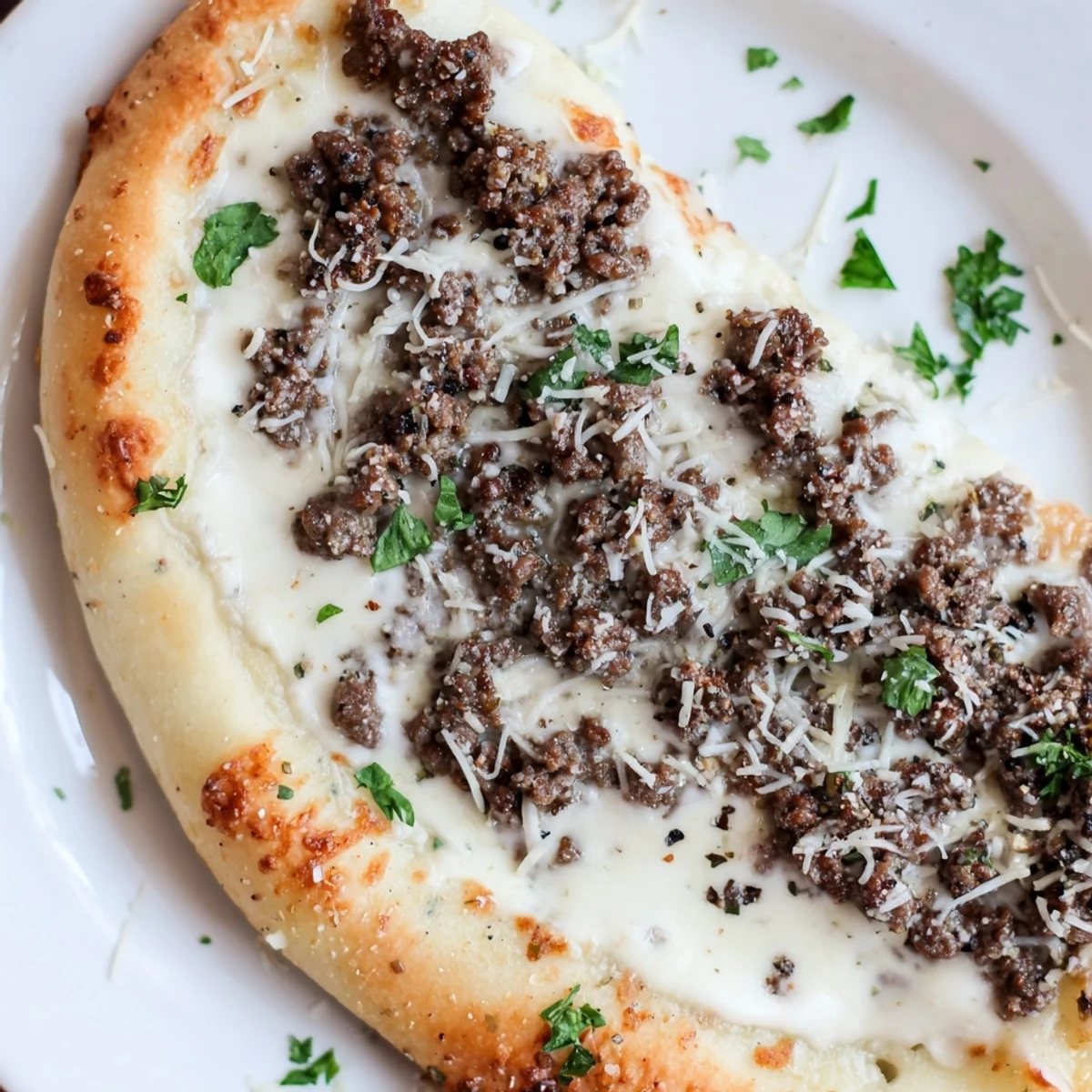 The magic here is that beef and Alfredo are a classic pairing—think Alfredo in restaurants served over beef tips—and pizza is just the vehicle. The nutmeg in the sauce echoes the warmth of the oregano in the beef, creating a harmony that feels intentional rather than random. If you ever add sautéed mushrooms or caramelized onions, they slot into this flavor story beautifully without competing.
