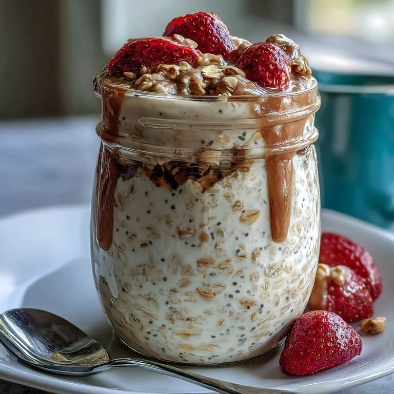 Pin it There's something almost meditative about assembling overnight oats the night before—the way chia seeds disappear into milk like tiny promises of tomorrow's breakfast. I discovered this recipe during a particularly hectic week when mornings felt like controlled chaos, and suddenly having something nourishing waiting in the fridge transformed how I started my days. The strawberries add this unexpected brightness, and the whole thing comes together so effortlessly it barely feels like cooking. It became my answer to that perpetual question of what to eat when you're running late but refuse to compromise on actually tasting your breakfast.
