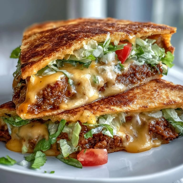 - Lay a tortilla flat and pile seasoned beef in the center, spoon that warm cheese sauce right over the top, then add sour cream, lettuce, tomato, and extra cheese. Fold the edges over like you are tucking in blankets, creating that hexagonal shape that holds everything together.