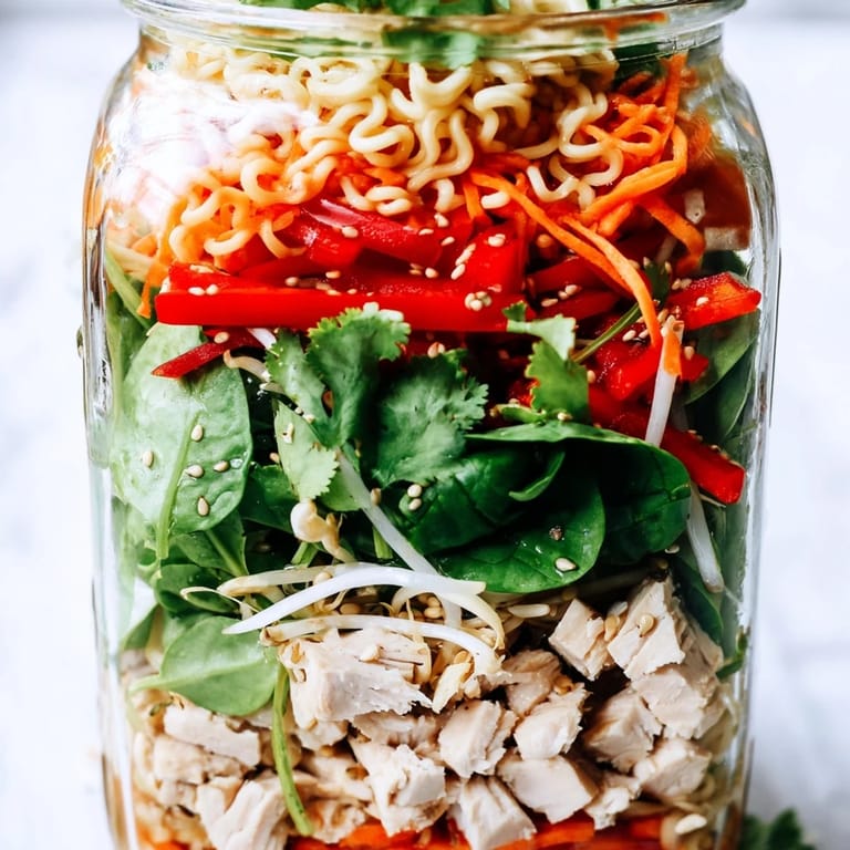 Pin it My coworker used to bring these glass jars to the break room, and I thought she was showing off until she poured boiling water from the kettle and stirred it into a full meal in under three minutes. I asked for the trick that same afternoon. Now I keep four jars lined up in my fridge every Sunday night, and my lunch breaks feel less like a chore and more like a small reset in the middle of the day.