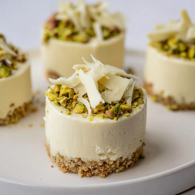 Pin it I discovered pistachio paste quite by accident at a farmer's market, and the vendor insisted I'd regret not trying it in a dessert. That weekend, I found myself experimenting with it in a no-bake cheesecake, and the result was so good that my roommate actually asked for the recipe before the bites were even gone. These little gems became my secret weapon for impressing guests—elegant, foolproof, and ready in less time than it takes to make a traditional cake.