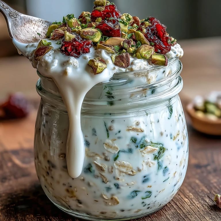 Pin it The morning my kitchen timer died, I started making overnight oats out of pure survival instinct. I'd forgotten to grocery shop and needed something fast for my early meeting. That jar of pistachios sitting on my counter looked lonely, and suddenly breakfast became an adventure.