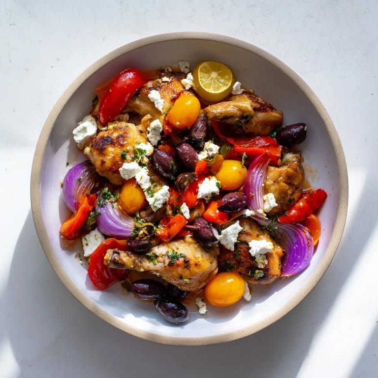 The first time I brought this to a potluck, someone asked if I'd ordered it from a Greek restaurant. I laughed and told them it was just chicken and peppers on a tray, but they didn't believe me until I wrote down the recipe on a napkin. Now three friends make it on repeat, and one of them texts me every time to say the feta on top is the best part.