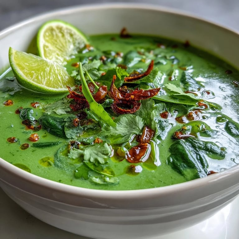 Pin it Brighten up your table with this vibrant Spinach Coriander Lemongrass Soup. This Asian-inspired fusion dish is a masterclass in balance, combining the earthy goodness of fresh spinach with the citrusy, aromatic lift of lemongrass and coriander. Infused with warming spices and mellowed by a luscious coconut milk base, it offers a sophisticated yet comforting flavor profile that is perfect as a light lunch or an impressive dinner party starter.