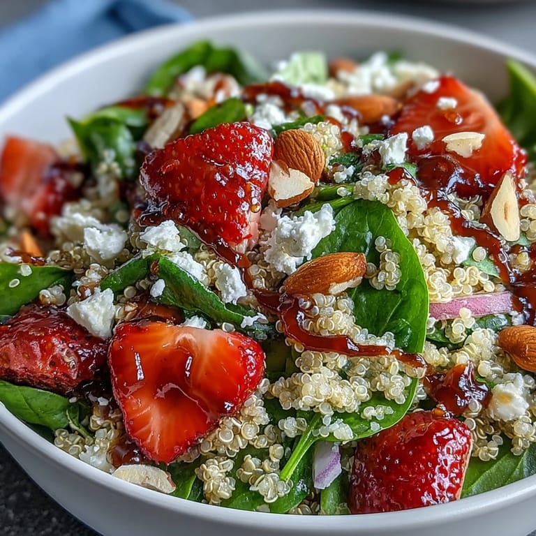 Pin it There's something magical about the combination of sweet strawberries and earthy spinach, especially when paired with protein-packed quinoa. This Strawberry Spinach Quinoa Salad brings together vibrant colors and complementary flavors in a dish that's as nutritious as it is beautiful. The tender quinoa provides a satisfying base, while the balsamic vinaigrette ties everything together with its perfect balance of tangy and sweet notes.