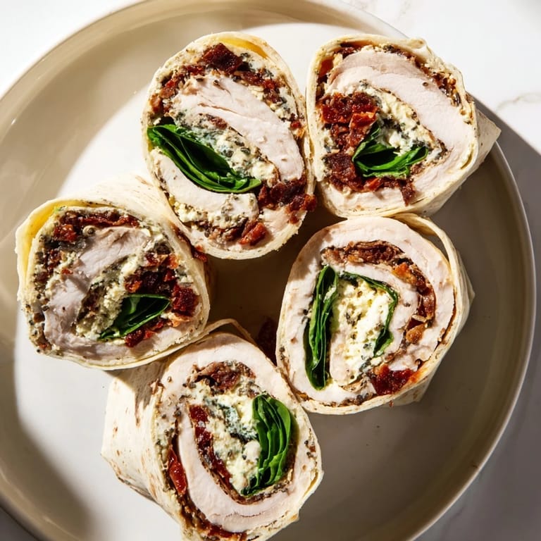 Pin it I stumbled onto these roll-ups on a Tuesday afternoon when my fridge was practically empty except for some deli turkey, a tub of cream cheese, and a jar of sun-dried tomatoes I'd been meaning to use. Instead of the usual sandwich, something made me reach for a tortilla, and within minutes I realized I'd accidentally created lunch gold. The combination of salty turkey, tangy sun-dried tomatoes, and that creamy base just worked, and now they're my go-to when I need something that looks fancy but takes zero actual effort.