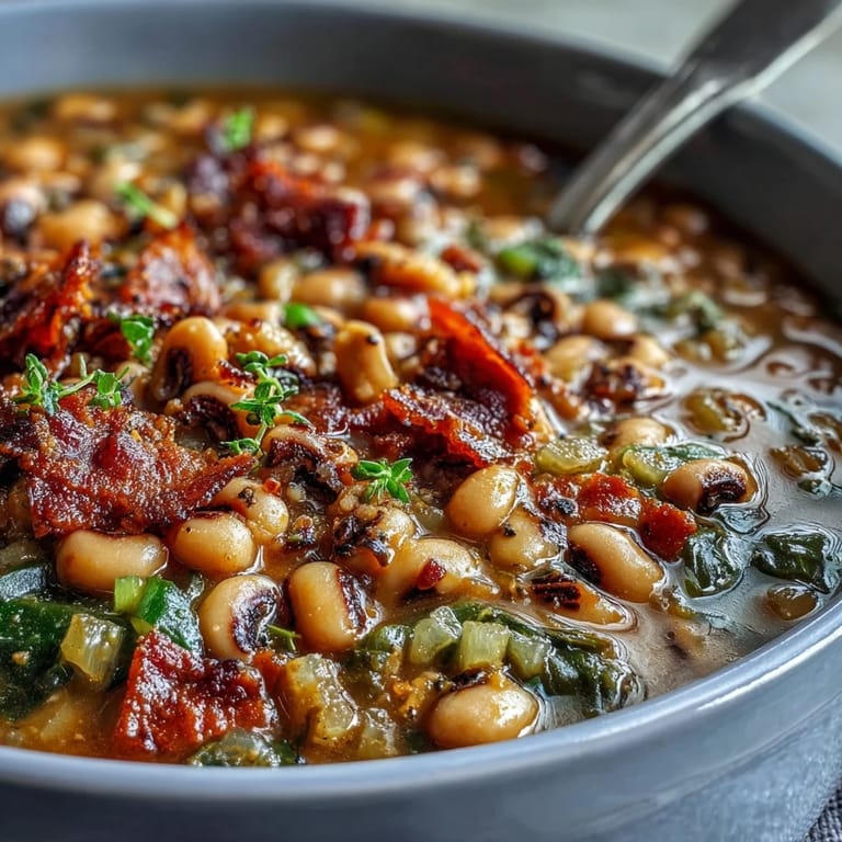 Black-eyed peas carry a specific kind of comfort—they're humble and earthy, but when you treat them right with bacon fat and careful seasoning, they become something worthy of a table full of people. There's no pretense here, just honest flavors layered into something warm and filling. Every culture has a version of this kind of dish, but the Texan approach feels especially generous, like someone's grandmother decided to put her whole heart into a pot and invited everyone she knows to taste it.